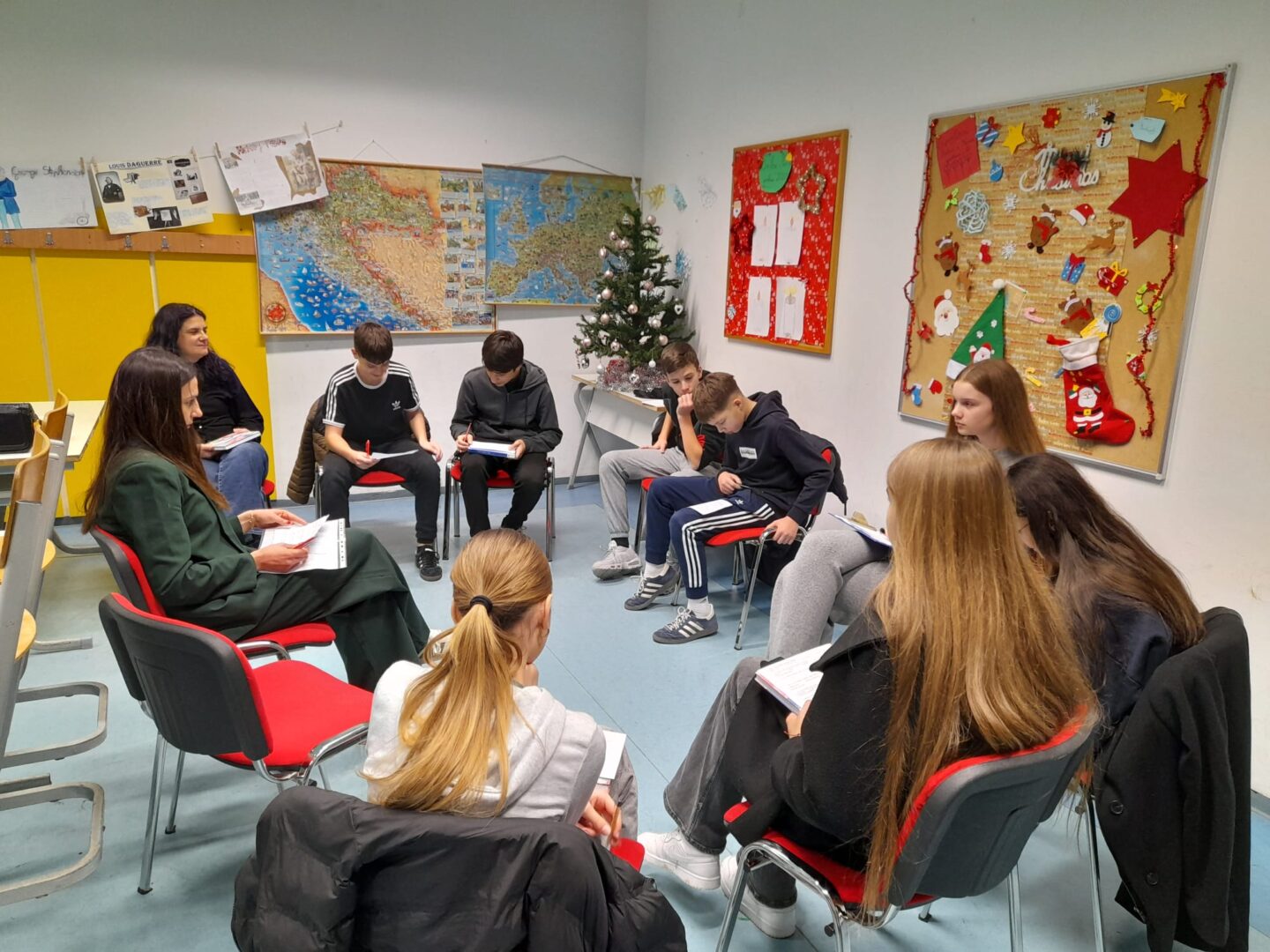Književni klub Mažuranići održao je svoj drugi susret na kojem su ovaj put sudjelovali učenici 7. i 8. razreda sa svojim profesoricama H. Šarić, I. Krnić te knjižničarkom V. Bogdan. Zadana knjiga bila je “Haj, ja sam on line” Melite Rundek. Tema djela posebno je danas aktualna s obzirom da učenici sve više vremena provode na društvenim mrežama.