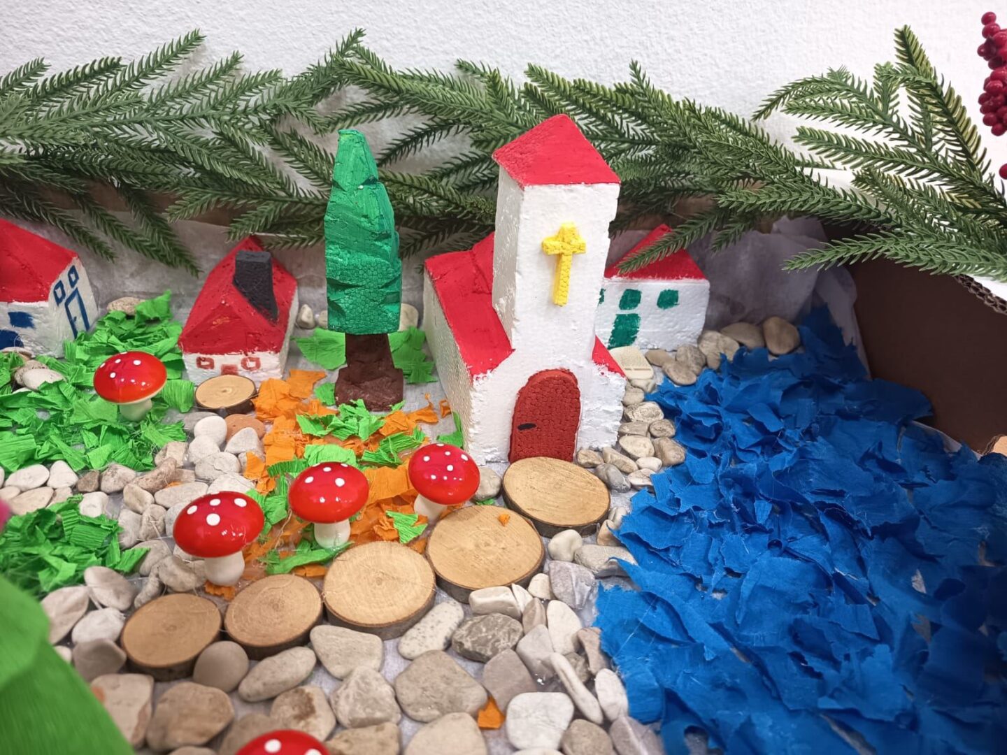 Učenici su izrađivali božićno selo koristeći kamenčiće, stiropor i ostale male predmete. Tijekom rada pokazali su veliku kreativnost i maštovitost. Od različitih materijala oblikovali su kućice, staze i ukrase koji su zajedno činili pravo božićno selo.