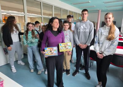 Mjesec listopad međunarodni je mjesec školskih knjižnica, stoga su naši osmaši poklonili našoj školskoj knjižnici dvije kutije memori kartica koje su izradili na satu likovne kulture obrađujući tematiku crtanja stripa.