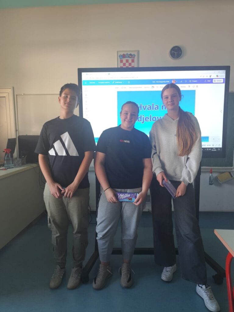 Pod vodstvom profesorice geografije Ivane Jurica i profesorice Hrvatskog jezika Hamide Šarić, učenici su pokazali koliko geografija može biti zanimljiva, dinamična i prisutna u svakodnevnom životu. Kroz kviz znanja nije se provjeravalo samo gradivo, već i razumijevanje svijeta koji nas okružuje – prostora u kojem živimo, putujemo i stvaramo uspomene. Upravo zato geografija nije samo školski predmet, već ključ za bolje razumijevanje svijeta i našeg mjesta u njemu.