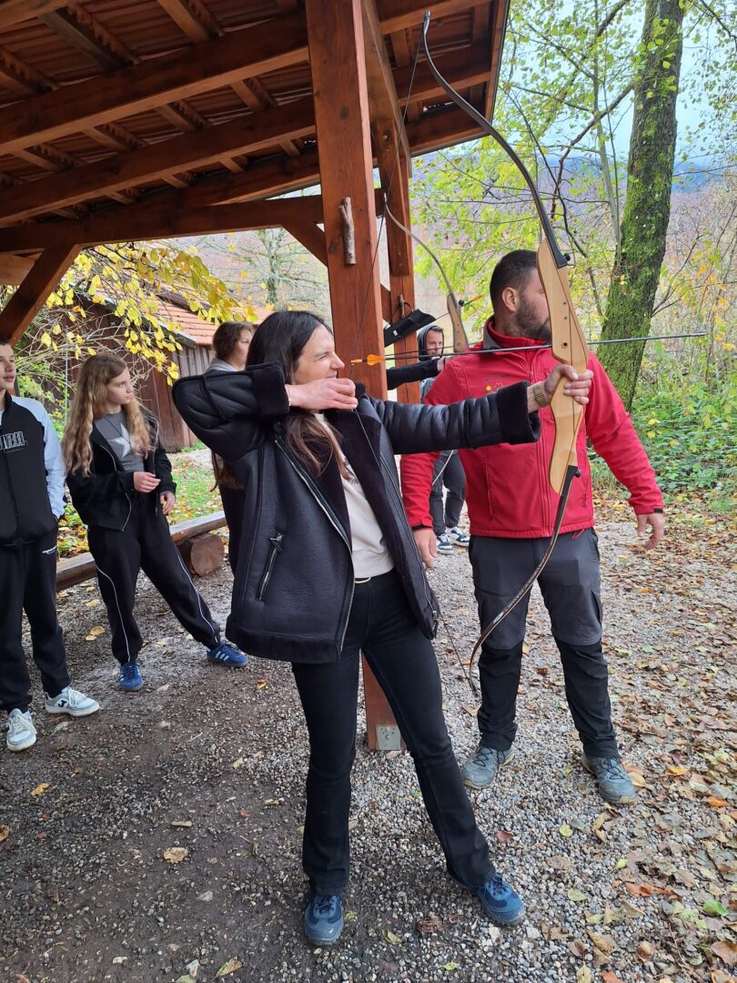 Učenici 8.a i 8.b ovog su ponedjeljka 27.10.2025. uživali u terenskoj nastavi u pustolovno-izletničkom centru Rizvan City koji je smješten u Lici, srcu Hrvatske, nedaleko od grada Gospića, u malom tipično ličkom selu Rizvanuša koje se nalazi u Parku prirode Velebit. U pratnji su bile njihove pustolovne razrednice Ivana Jelenčić i Ivana Krnić te ravnateljica Margit Vrbičić. Svi zajedno uživali su u mnoštvu jedinstvnih atraktivnih pustolovnih aktivnosti (penjanje na umjetnu stijenu, streličarstvo, divovska ljuljačka, ljudski stolni nogomet, zip line i adrenalinski poligon). Što su sve iskusili i naučili najbolje će opisati slike u prilogu.