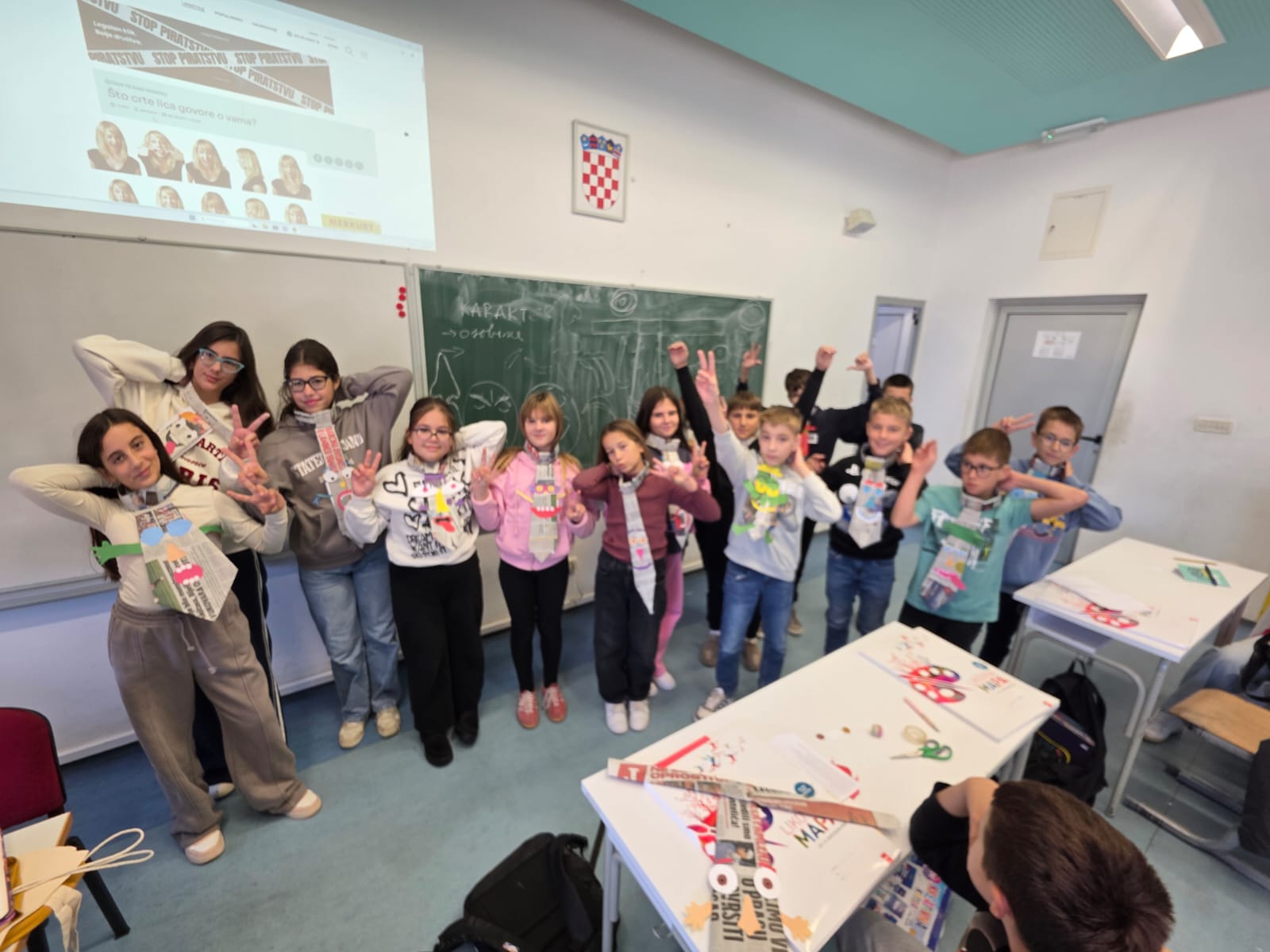 Učenici 5.b razreda su na satu likovne kulture izradili kravate koristeći se starim novinskim papirom te tako obilježili 18.listopada – Svjetski dan kravate.