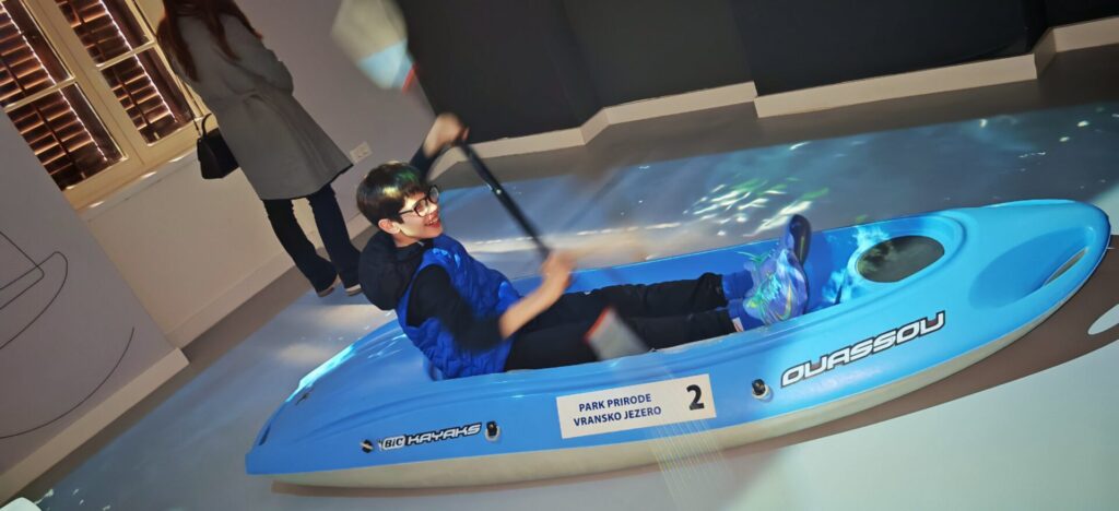 Posebno zanimljiv dio terenske nastave bio je posjet interpretacijskom centru Biosfera u Biogradu na Moru. Kroz interaktivne sadržaje, multimediju i zanimljive prikaze učenici su učili o ekosustavu Vranskog jezera, njegovim stanovnicima te povezanosti čovjeka i prirode. Također, koristeći VR naočale mogli su roniti kornatskim arhipelagom, penjati se po stijenama Paklenice, spustiti se u Cerovačke pećine, …