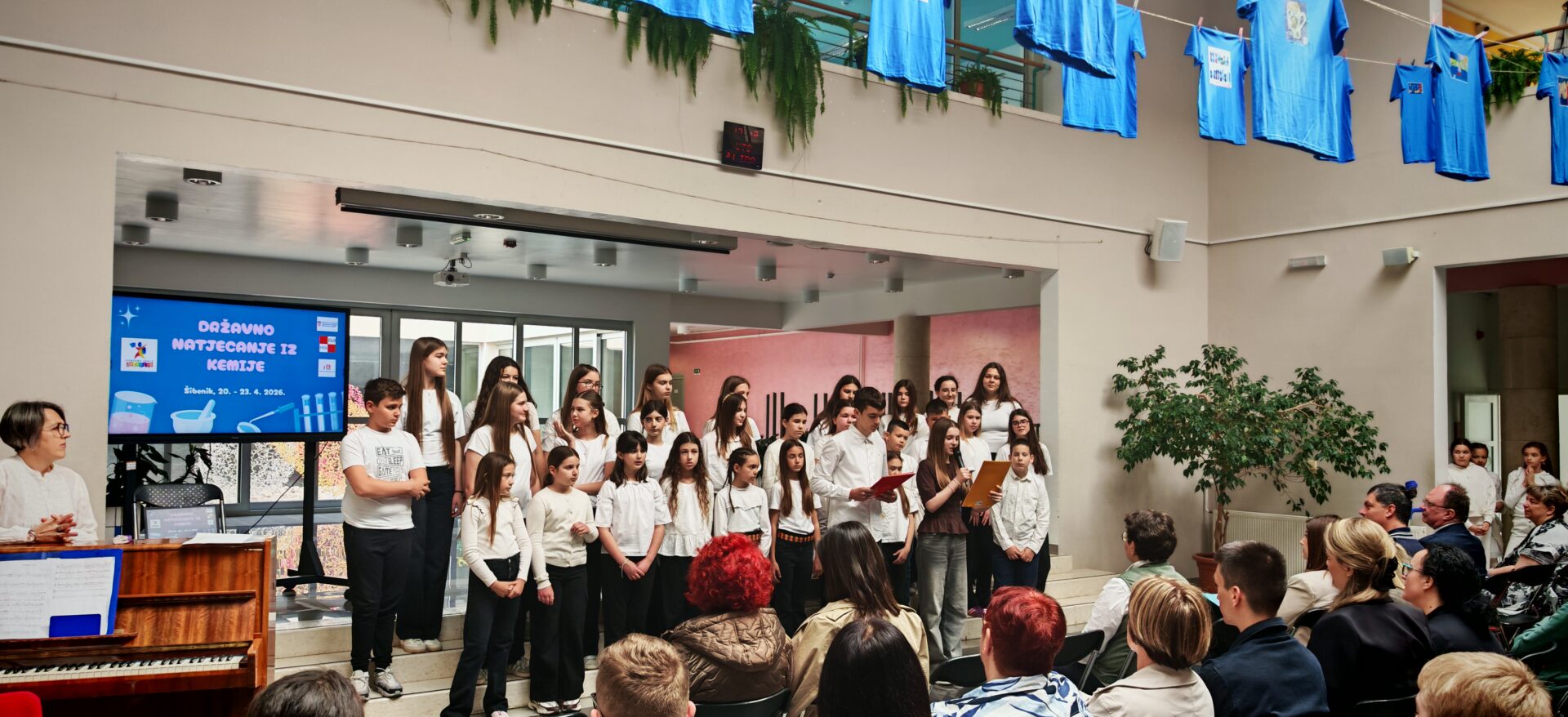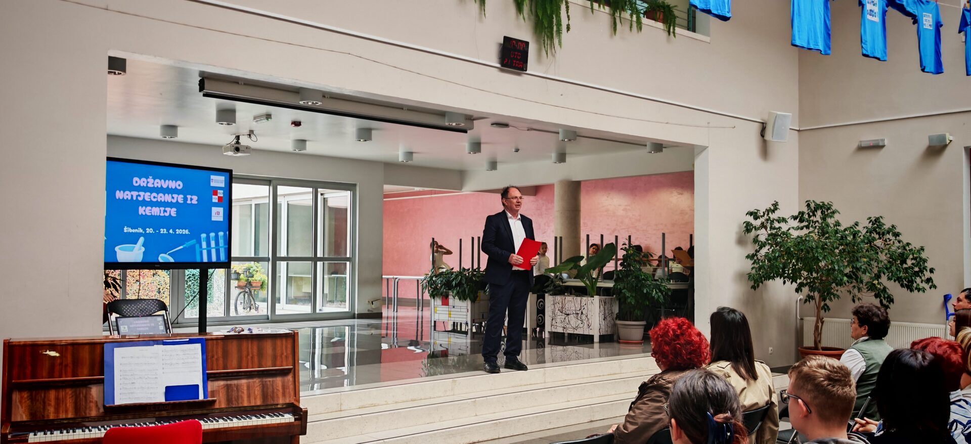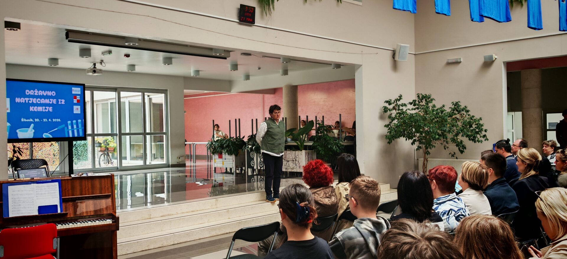 Naša škola danas, 21. travnja, bila je domaćin državnog Natjecanja iz kemije za učenike osnovnih i srednjih škola iz cijele Republike Hrvatske. Ugostili smo oko 200 učenika, njihove mentore te članove Državnog povjerenstva. Bio je to dan ispunjen znanjem, znatiželjom i uzbuđenjem, ali i onom posebnom atmosferom koja nastane kada se na jednom mjestu okupe mladi ljudi koje povezuje ljubav prema znanosti i istraživanju.