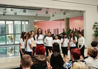Naše smo goste dočekali prigodnim programom koji su s puno truda, entuzijazma i srdačnosti pripremili učenici i djelatnici škole pod vodstvom profesorica Hamide Šarić i Sonje Batur te učiteljice Antonije Maleš Vukorepa. Svečani doček bio je prilika da im poželimo dobrodošlicu i da kroz program pokažemo toplinu i zajedništvo, te baštinu našeg grada.